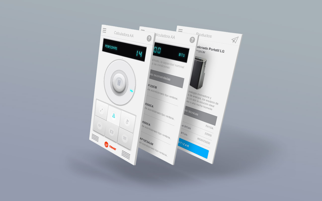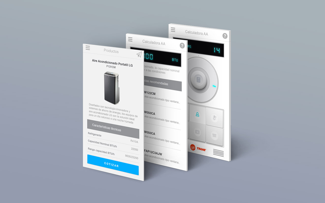 Aplicación para encontrar el tipo de aire acondicionado ideal para un espacio determinado, basado en las variables presentes. Actúa como un catálogo detallado de productos e integra funciones de envío de presupuesto vía email, segumiento de cliente y visibilidad de sponsors.
